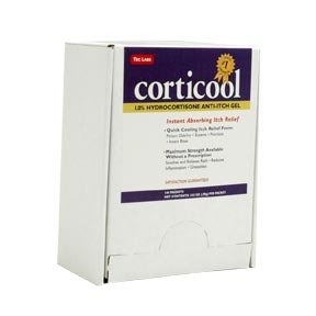 Corticool hydrocortisone anti itch gel for quick itch relief. Corticool absorbs instantly and cools on contact to relieve itching associated with eczema, psoriasis, insect bites and poison plants. When tested against a 2.5% prescription hydrocortisone cream, Corticool penetrated 2.75 times better providing higher bioavailability of hydrocortisone. 144 unit dose packets per box, each packet contains 1/32 oz.